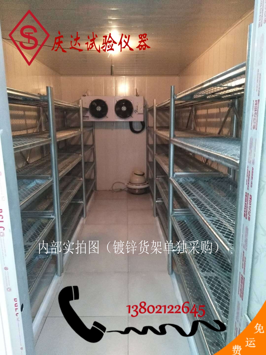 試驗室內(nèi)壁裝有保溫層, 采用阻燃聚胺脂板,外壁采用環(huán)保PVC板,地板采用5MM橡膠板,絕緣防滑,也可根據(jù)用戶要求訂做。一個防盜門二個鋁合金窗戶(帶防盜鋼絲),三相五線,兩個照明燈管,有220V插座,380V插座。選裝空調(diào),預(yù)留了空調(diào)口,室內(nèi)貨架可自備。